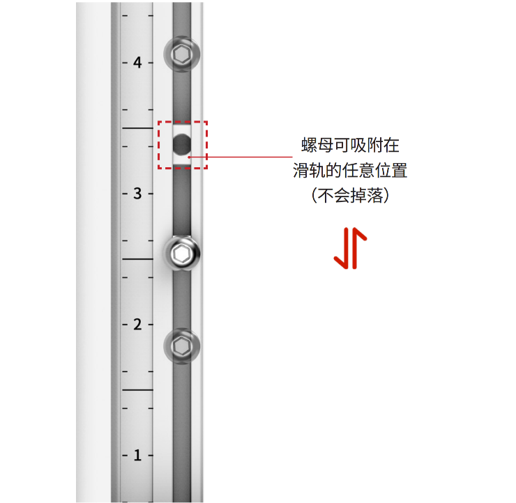 嵌入隱藏式的軟磁導(dǎo)軌,能使得螺母自由任意定位。可吸附在滑軌的任意位置(不會(huì)掉落)。實(shí)現(xiàn)非標(biāo)設(shè)備的無縫銜接。